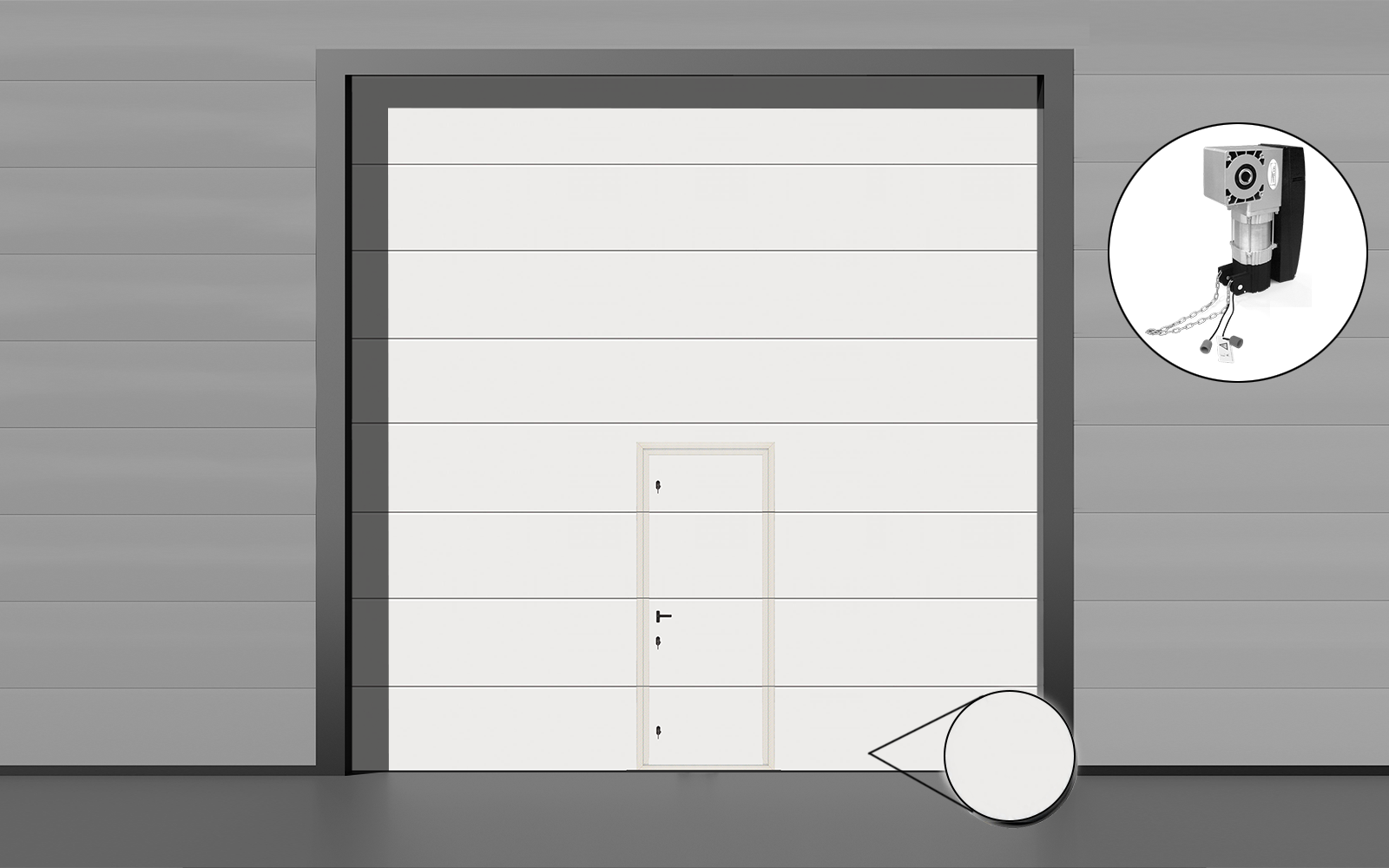 Composée d’une double paroi en acier galvanisé avec une mousse en polyuréthane sur 42 mm d’épaisseur, la Porte de garage sectionnelle Lisse 4000 x 4000 avec portillon Monaco est de loin la porte la plus isolante.